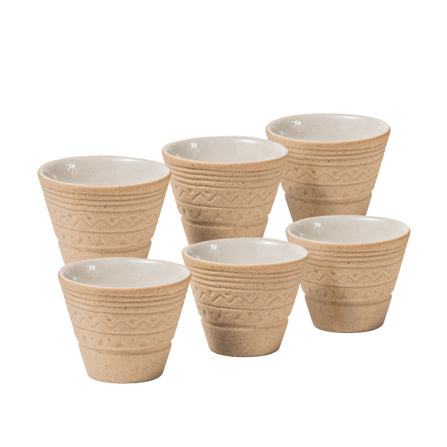 فناجين من الطين صناعة يدوي بنحت النقوش التراثية